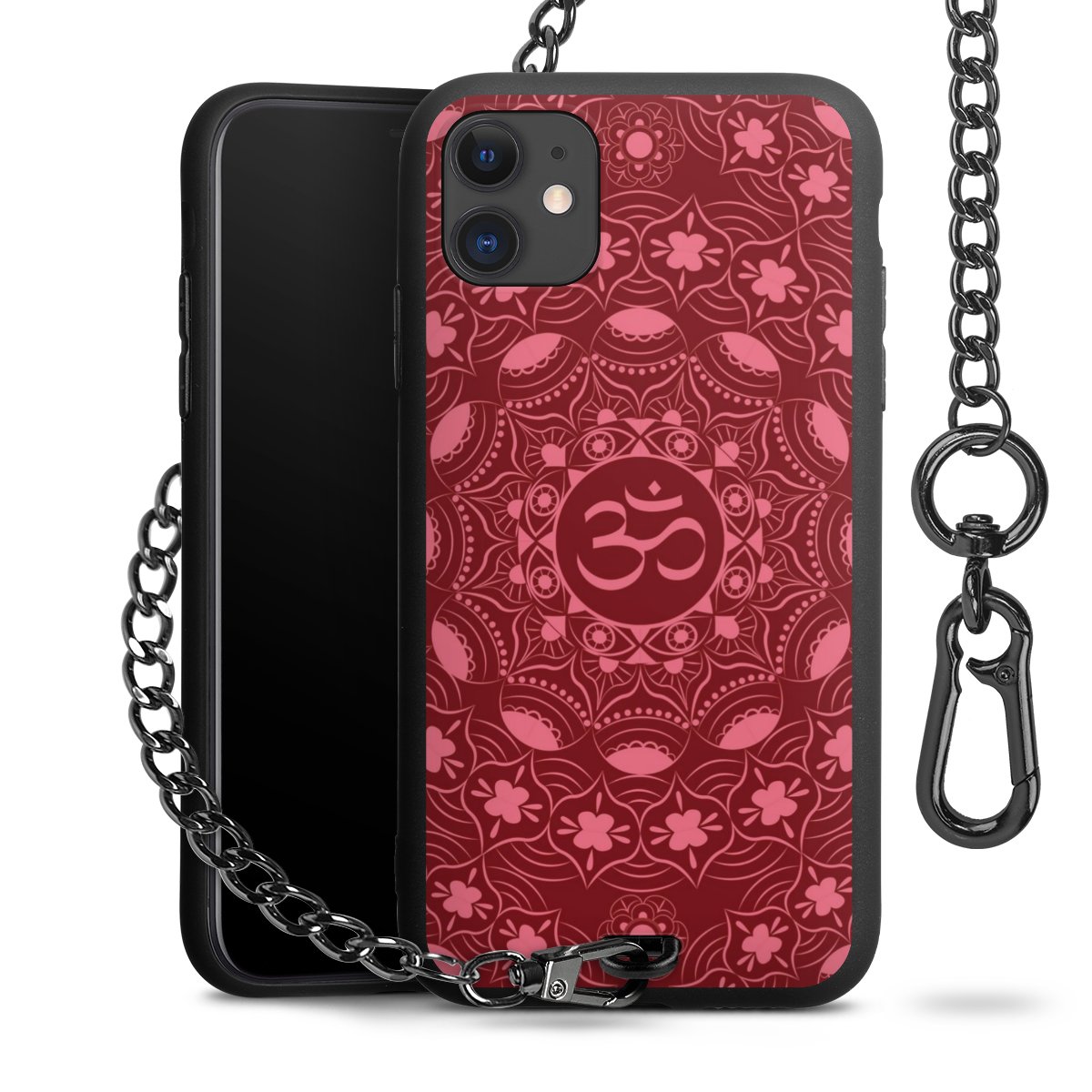 - Mattschwarze Handyhülle mit Metallkette