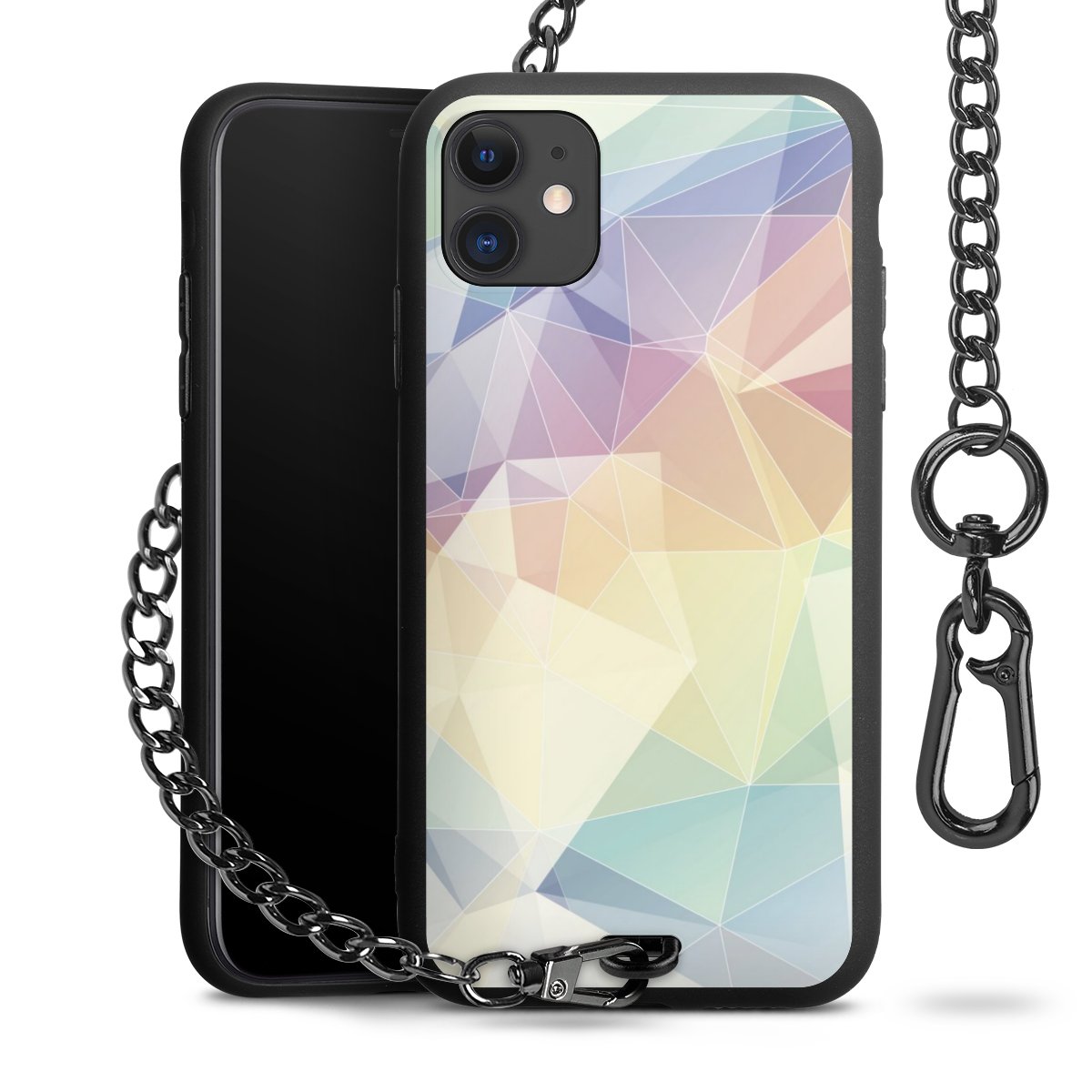 - Mattschwarze Handyhülle mit Metallkette