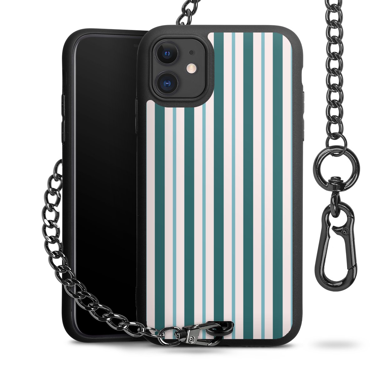 - Mattschwarze Handyhülle mit Metallkette