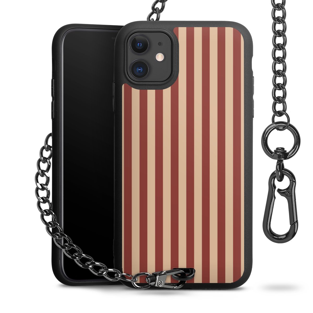 - Mattschwarze Handyhülle mit Metallkette