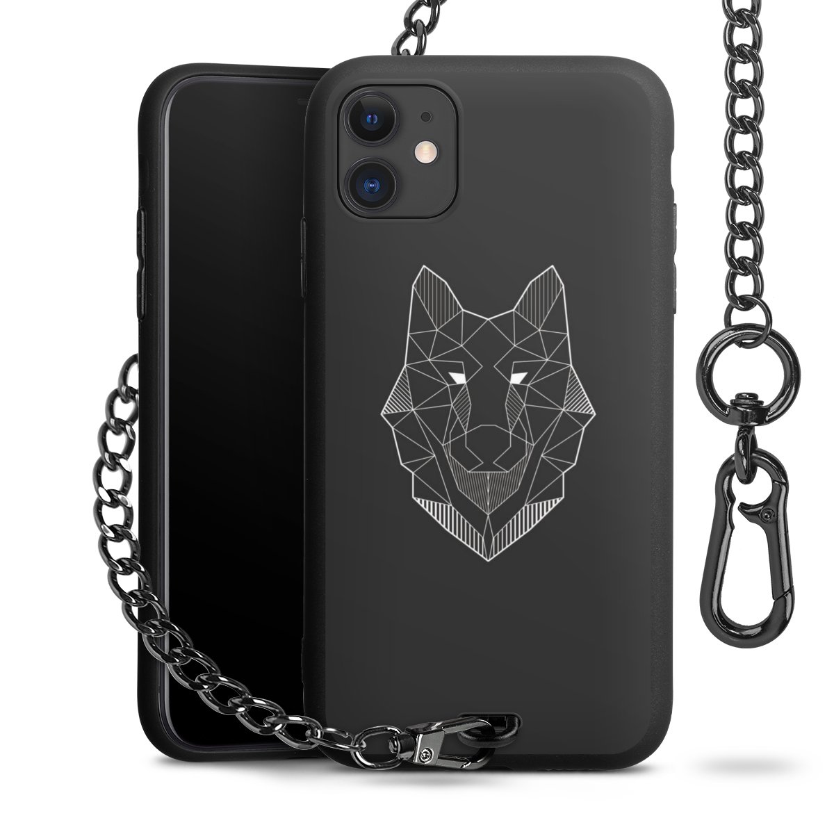 - Mattschwarze Handyhülle mit Metallkette
