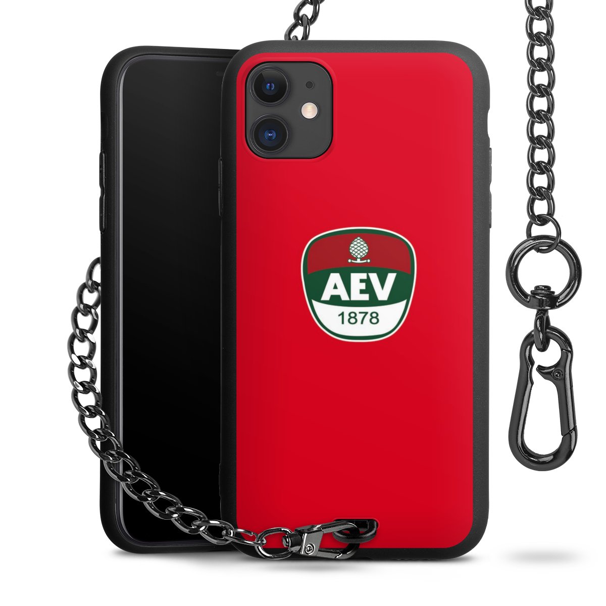 Die mattschwarze Silikon-Handyhülle besteht aus robustem TPU (thermoplastisches Polyurethan). Sie ist flexibel und schützt Dein Smartphone vor Stößen und Kratzern. Die Kette sowie der Karabinerhaken sind aus Metall in Gunmetal-Optik gefertigt. Für dieses Produkt kommen ausschließlich TÜV-geprüfte Materialien zum Einsatz.