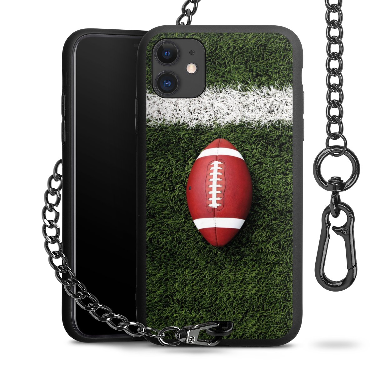 - Mattschwarze Handyhülle mit Metallkette