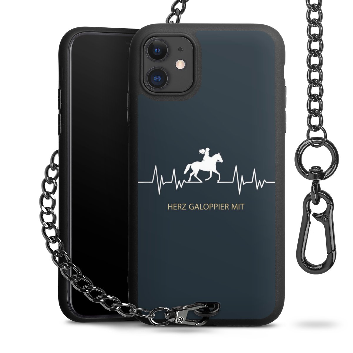 - Mattschwarze Handyhülle mit Metallkette