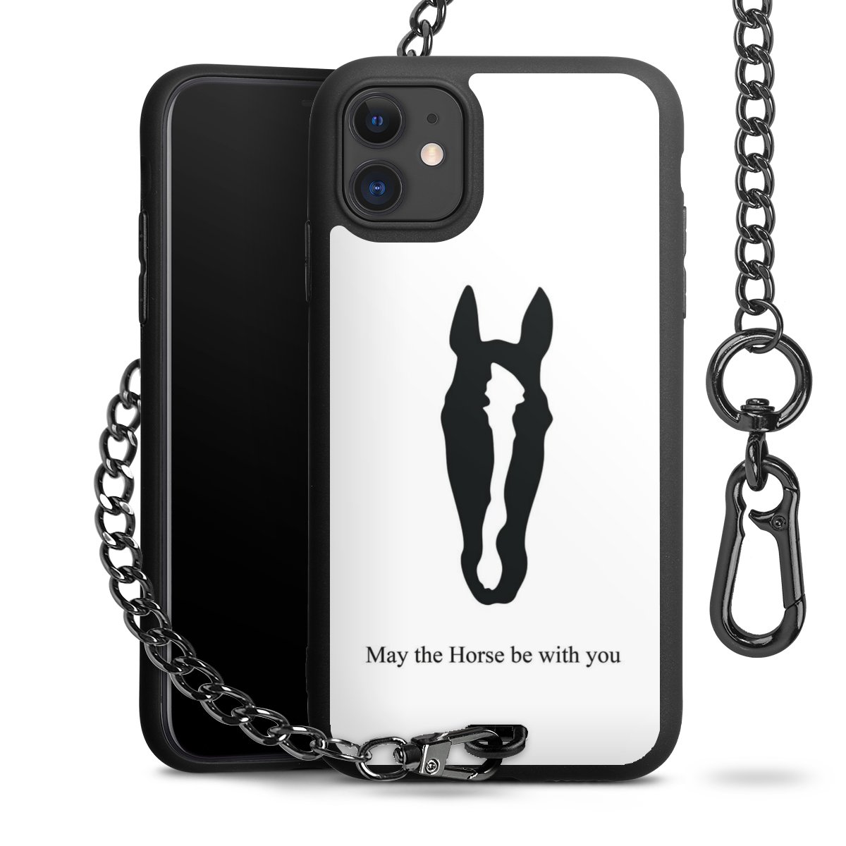 - Mattschwarze Handyhülle mit Metallkette