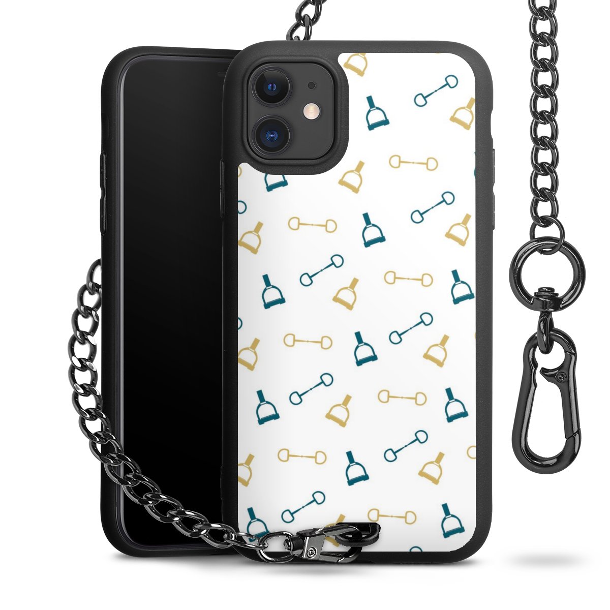 • Mattschwarze Handyhülle mit Metallkette