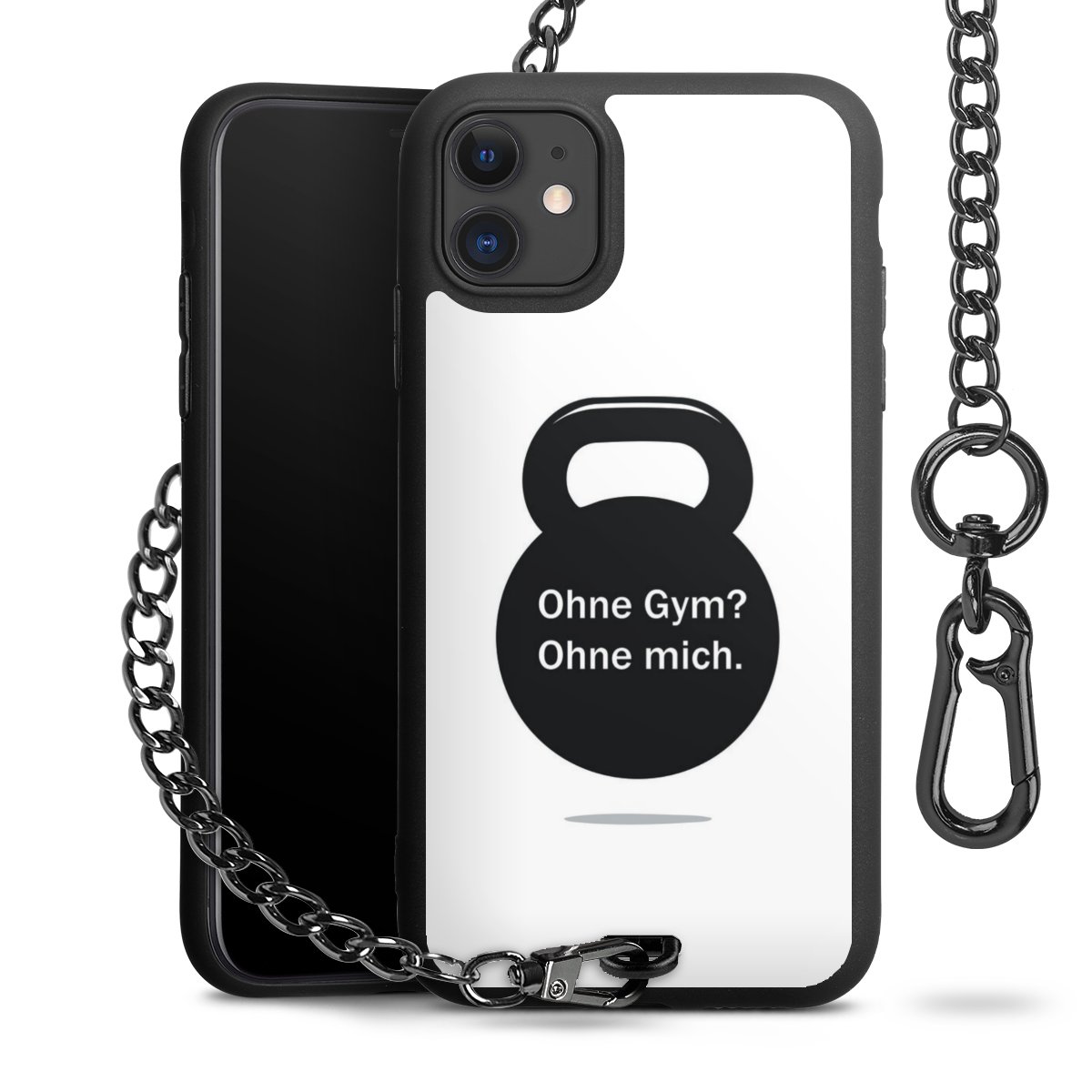 Die mattschwarze Silikon-Handyhülle besteht aus robustem TPU (thermoplastisches Polyurethan). Sie ist flexibel und schützt Dein Smartphone vor Stößen und Kratzern. Die Kette sowie der Karabinerhaken sind aus Metall in Gunmetal-Optik gefertigt. Für dieses Produkt kommen ausschließlich TÜV-geprüfte Materialien zum Einsatz.