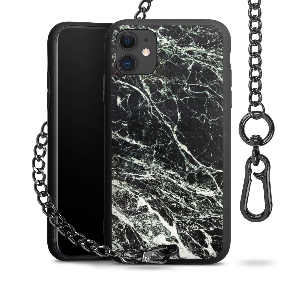 - Mattschwarze Handyhülle mit Metallkette