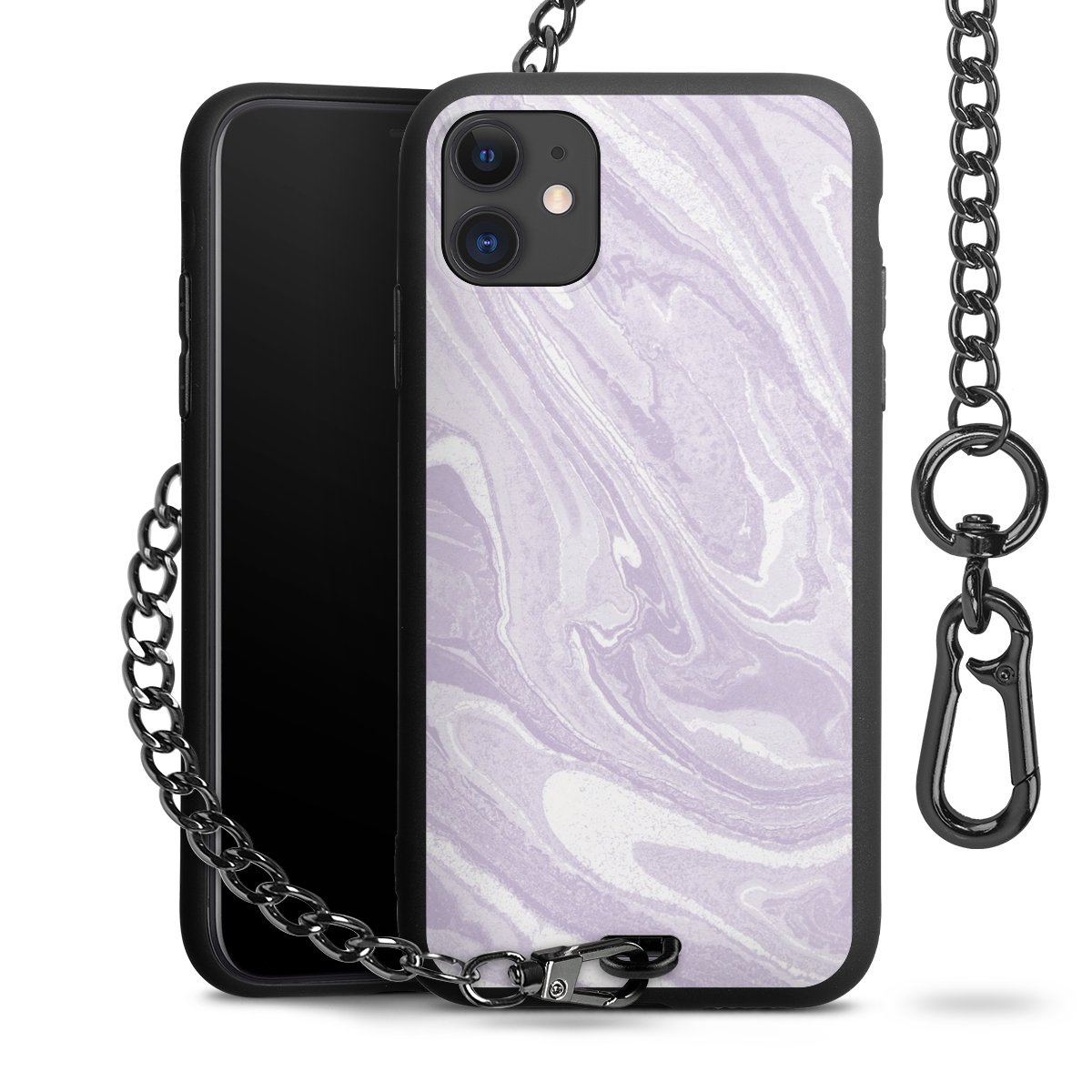 • Mattschwarze Handyhülle mit Metallkette