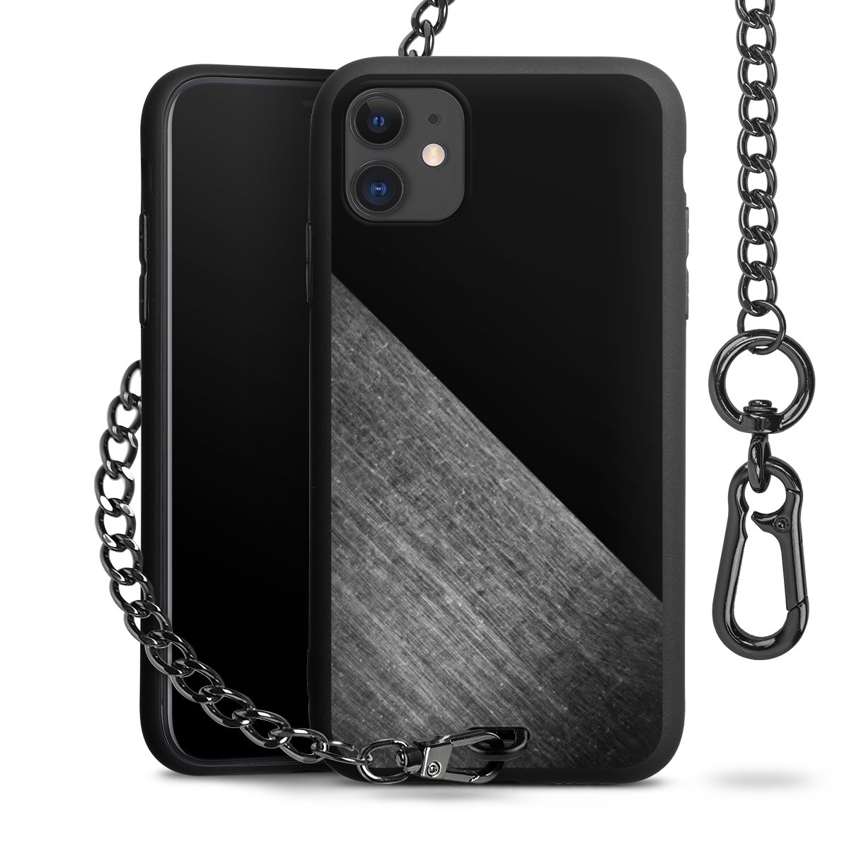 - Mattschwarze Handyhülle mit Metallkette