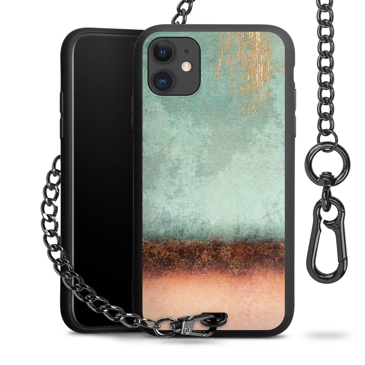 • Mattschwarze Handyhülle mit Metallkette