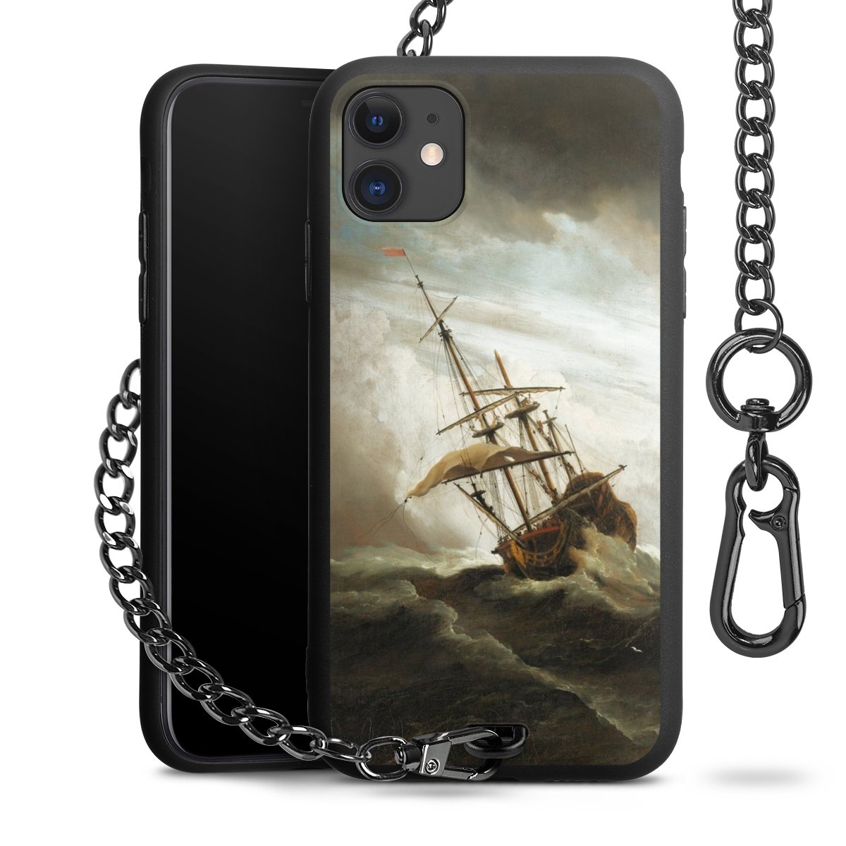 - Mattschwarze Handyhülle mit Metallkette