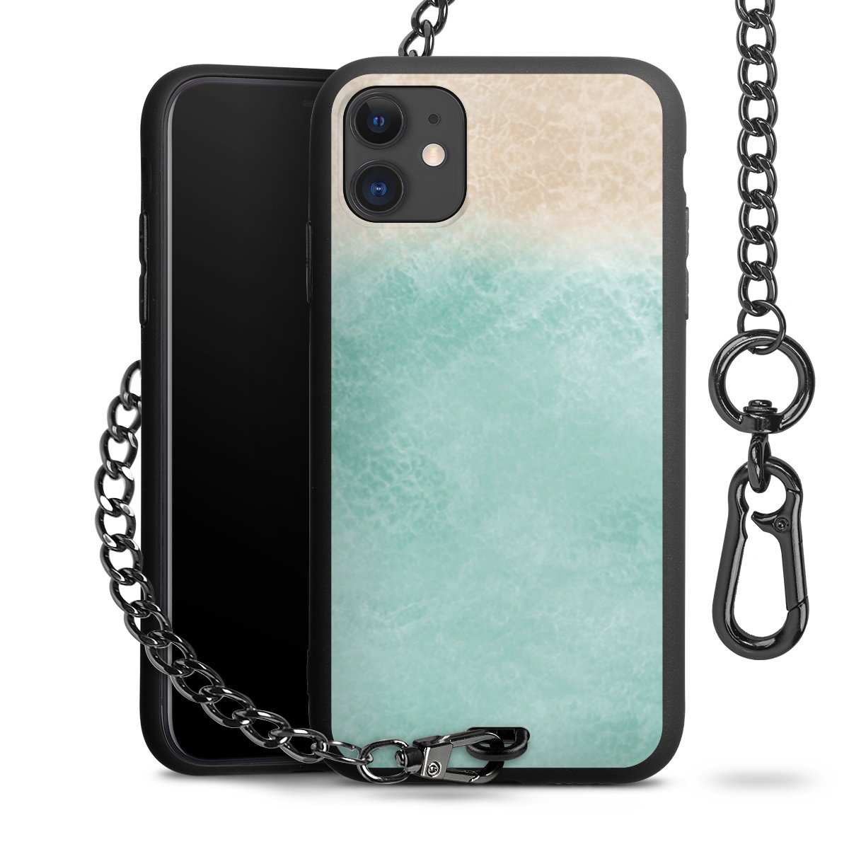 • Mattschwarze Handyhülle mit Metallkette