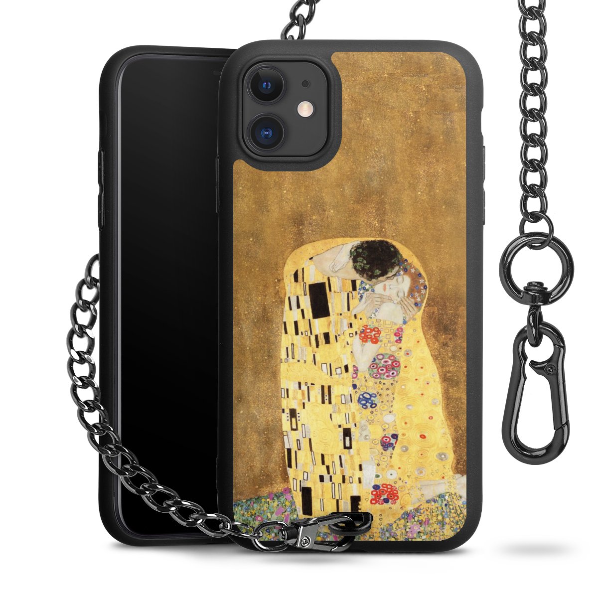 • Mattschwarze Handyhülle mit Metallkette