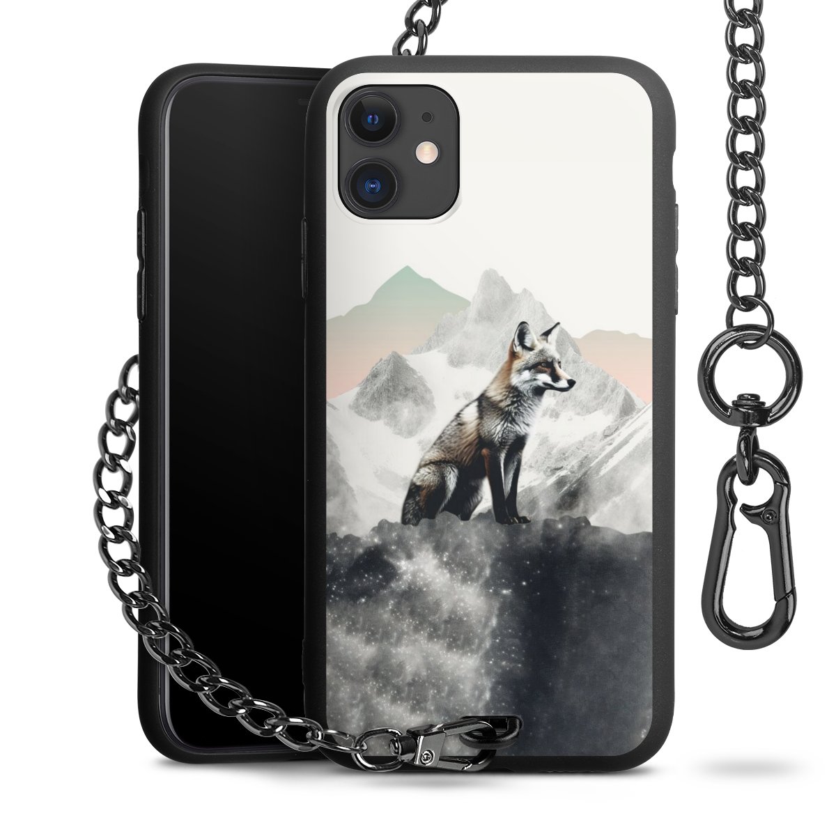 • Mattschwarze Handyhülle mit Metallkette