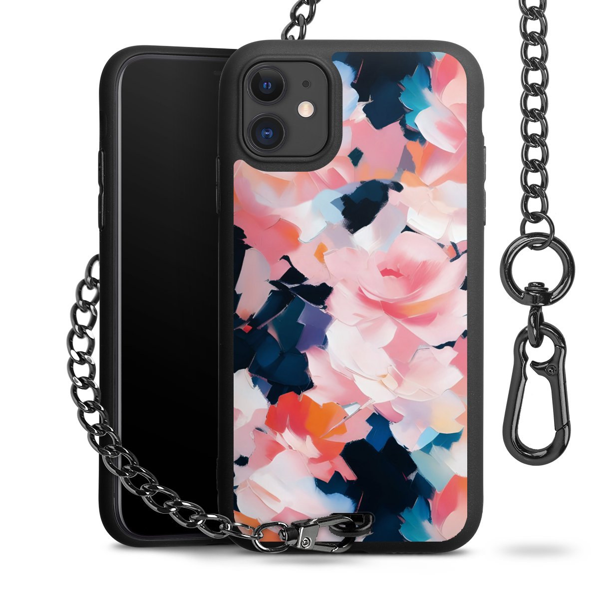 • Mattschwarze Handyhülle mit Metallkette
