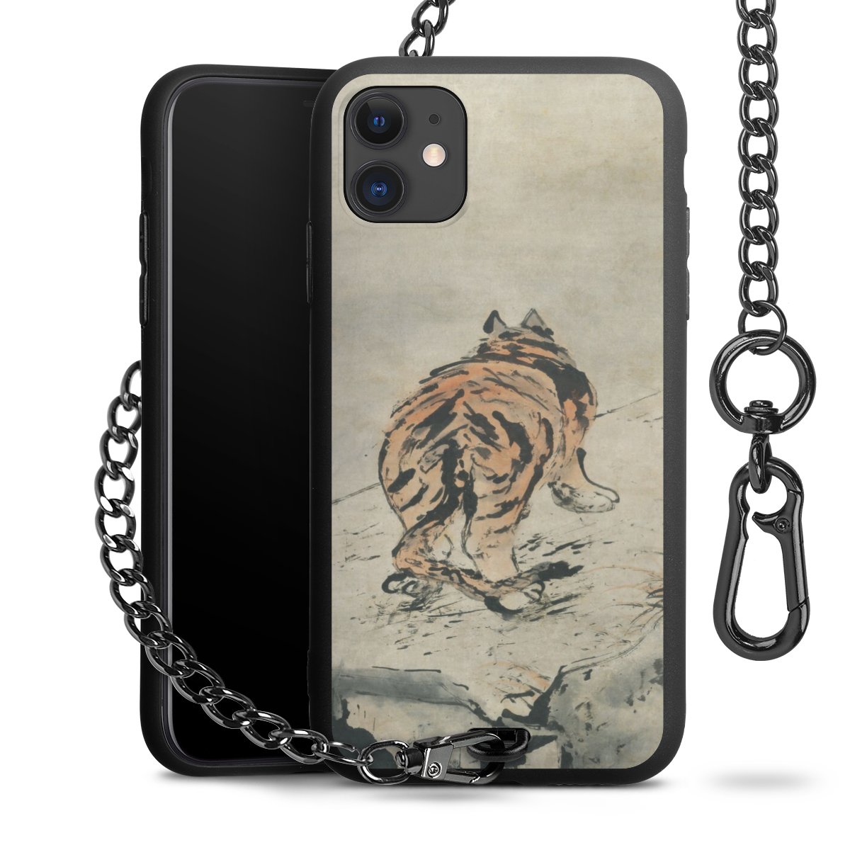 • Mattschwarze Handyhülle mit Metallkette