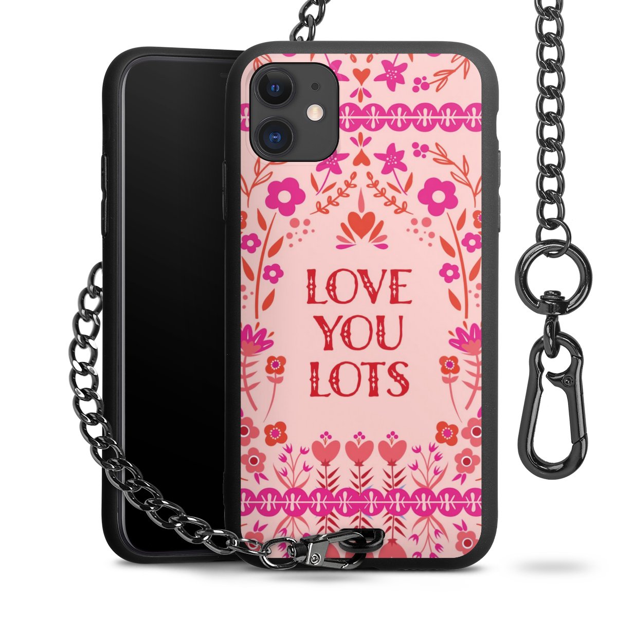 Die mattschwarze Silikon-Handyhülle besteht aus robustem TPU (thermoplastisches Polyurethan). Sie ist flexibel und schützt Dein Smartphone vor Stößen und Kratzern. Die Kette sowie der Karabinerhaken sind aus Metall in Gunmetal-Optik gefertigt. Für dieses Produkt kommen ausschließlich TÜV-geprüfte Materialien zum Einsatz.