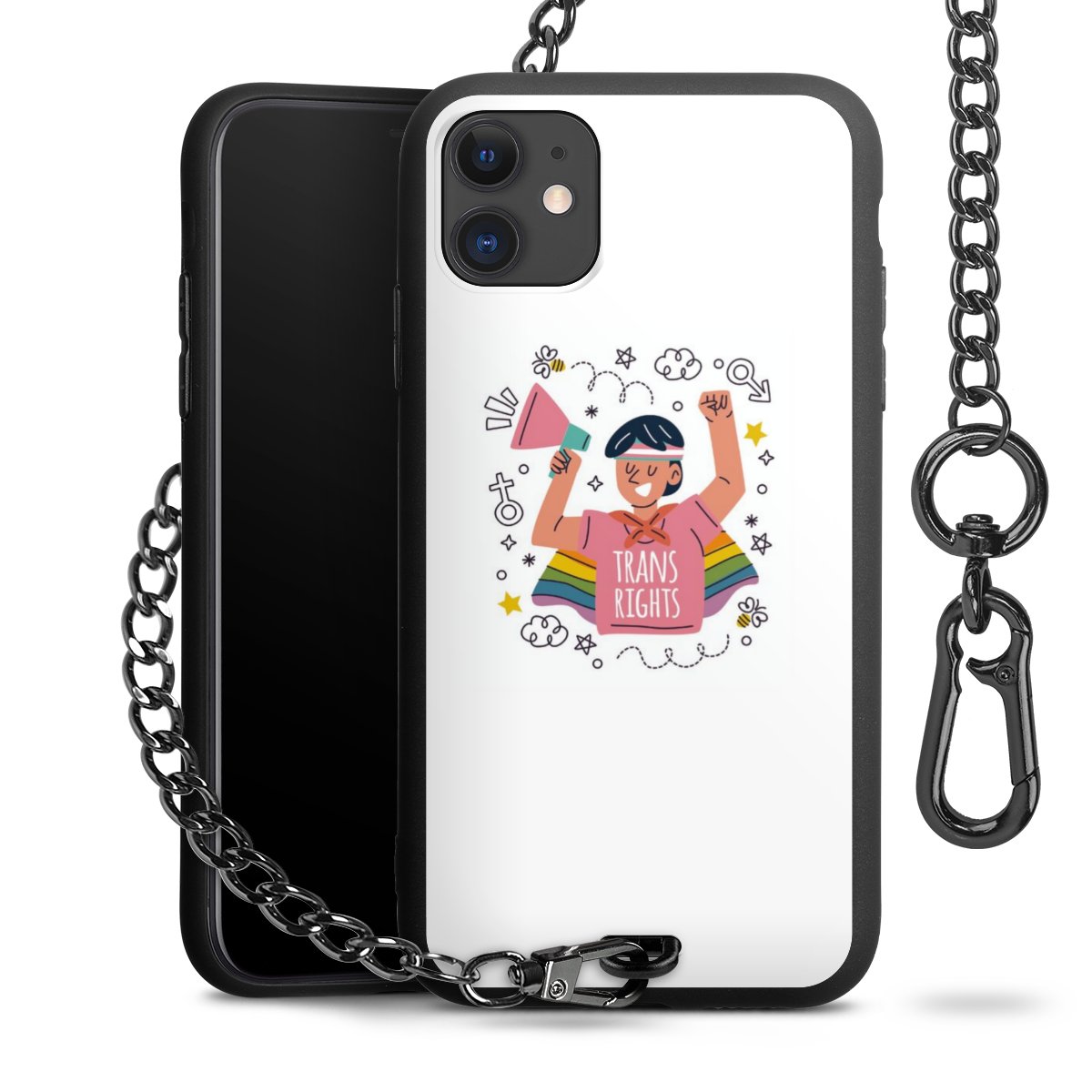 Die mattschwarze Silikon-Handyhülle besteht aus robustem TPU (thermoplastisches Polyurethan). Sie ist flexibel und schützt Dein Smartphone vor Stößen und Kratzern. Die Kette sowie der Karabinerhaken sind aus Metall in Gunmetal-Optik gefertigt. Für dieses Produkt kommen ausschließlich TÜV-geprüfte Materialien zum Einsatz.