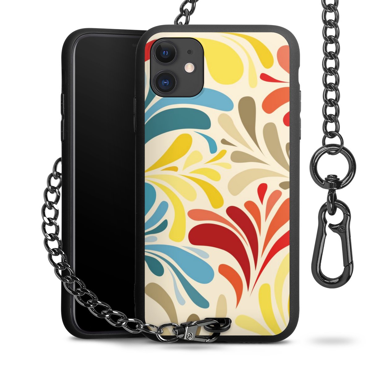 - Mattschwarze Handyhülle mit Metallkette