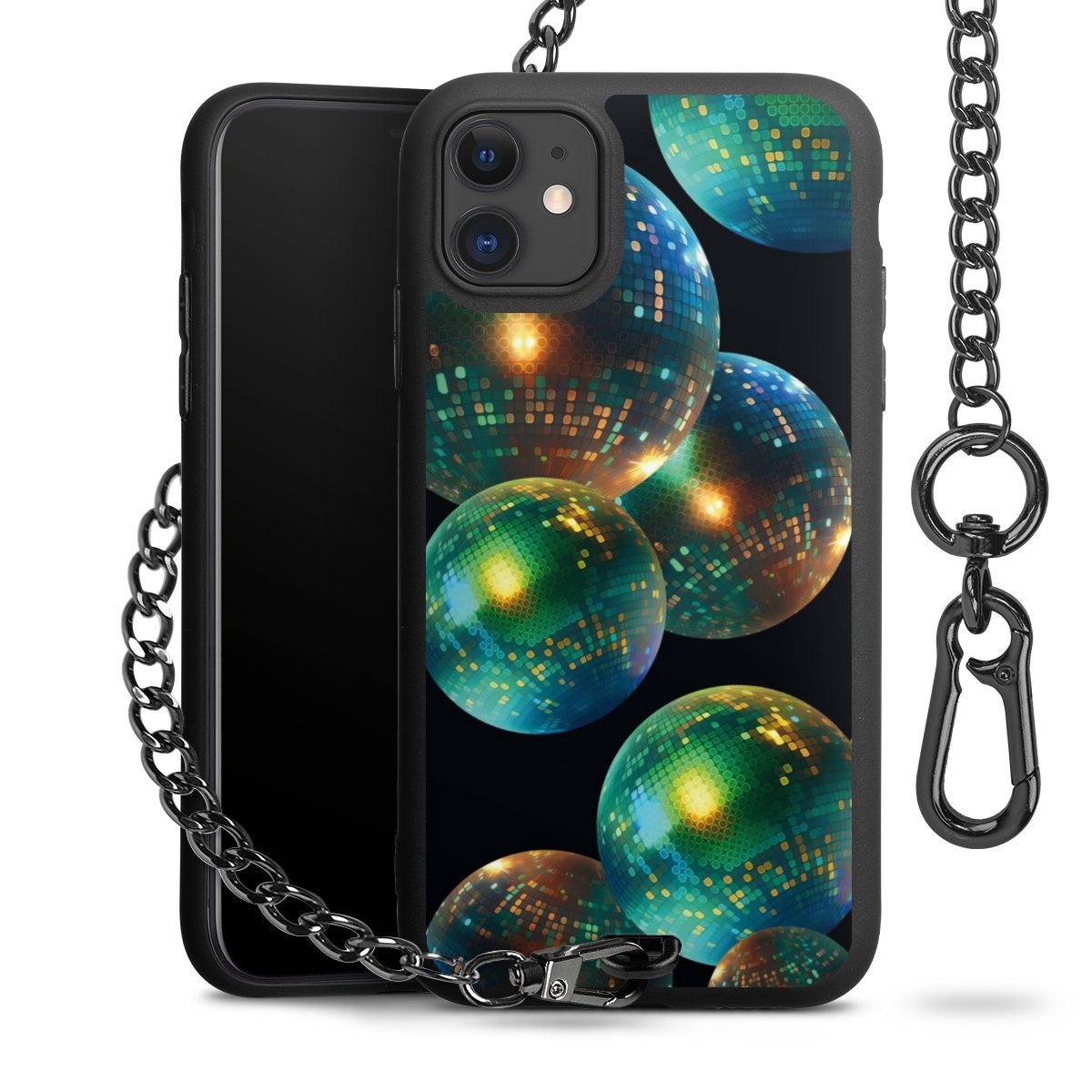 - Mattschwarze Handyhülle mit Metallkette