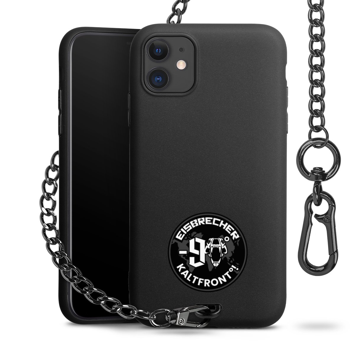 • Mattschwarze Handyhülle mit Metallkette