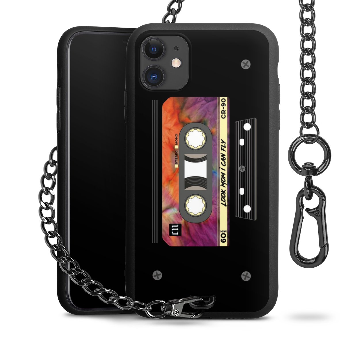 Die mattschwarze Silikon-Handyhülle besteht aus robustem TPU (thermoplastisches Polyurethan). Sie ist flexibel und schützt Dein Smartphone vor Stößen und Kratzern. Die Kette sowie der Karabinerhaken sind aus Metall in Gunmetal-Optik gefertigt. Für dieses Produkt kommen ausschließlich TÜV-geprüfte Materialien zum Einsatz.