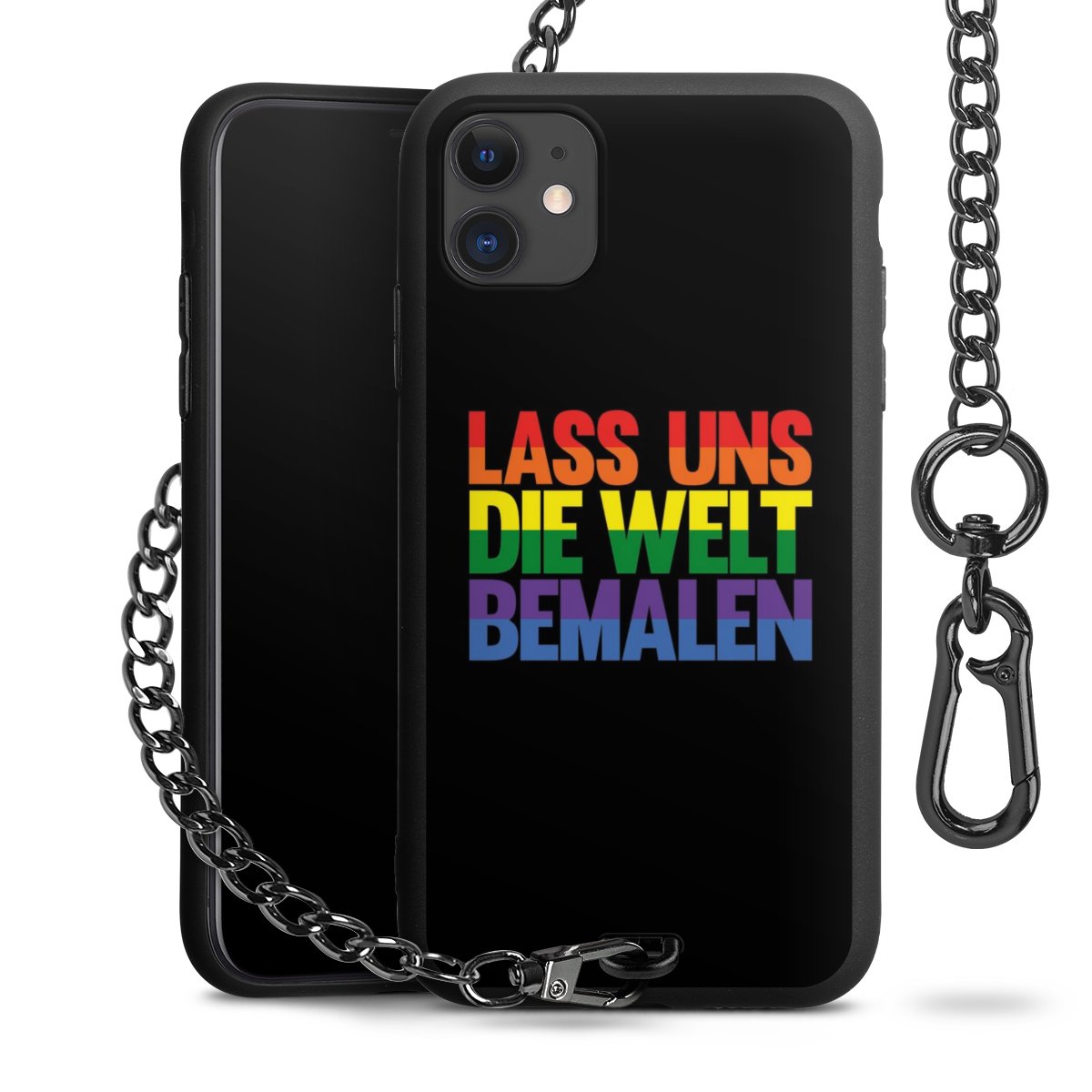 Die mattschwarze Silikon-Handyhülle besteht aus robustem TPU (thermoplastisches Polyurethan). Sie ist flexibel und schützt Dein Smartphone vor Stößen und Kratzern. Die Kette sowie der Karabinerhaken sind aus Metall in Gunmetal-Optik gefertigt. Für dieses Produkt kommen ausschließlich TÜV-geprüfte Materialien zum Einsatz.