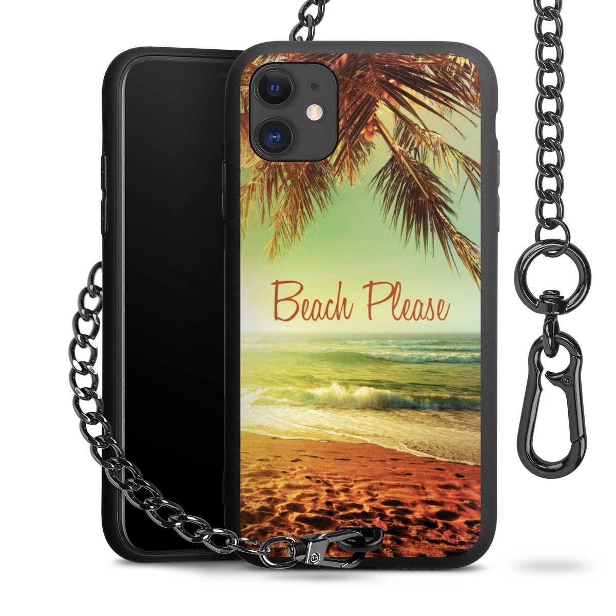 Die mattschwarze Silikon-Handyhülle besteht aus robustem TPU (thermoplastisches Polyurethan). Sie ist flexibel und schützt Dein Smartphone vor Stößen und Kratzern. Die Kette sowie der Karabinerhaken sind aus Metall in Gunmetal-Optik gefertigt. Für dieses Produkt kommen ausschließlich TÜV-geprüfte Materialien zum Einsatz.