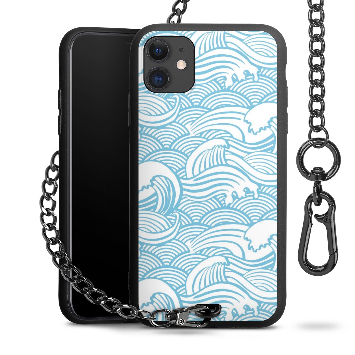 • Mattschwarze Handyhülle mit Metallkette