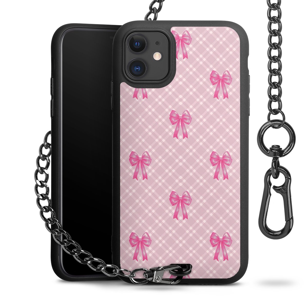 • Mattschwarze Handyhülle mit Metallkette