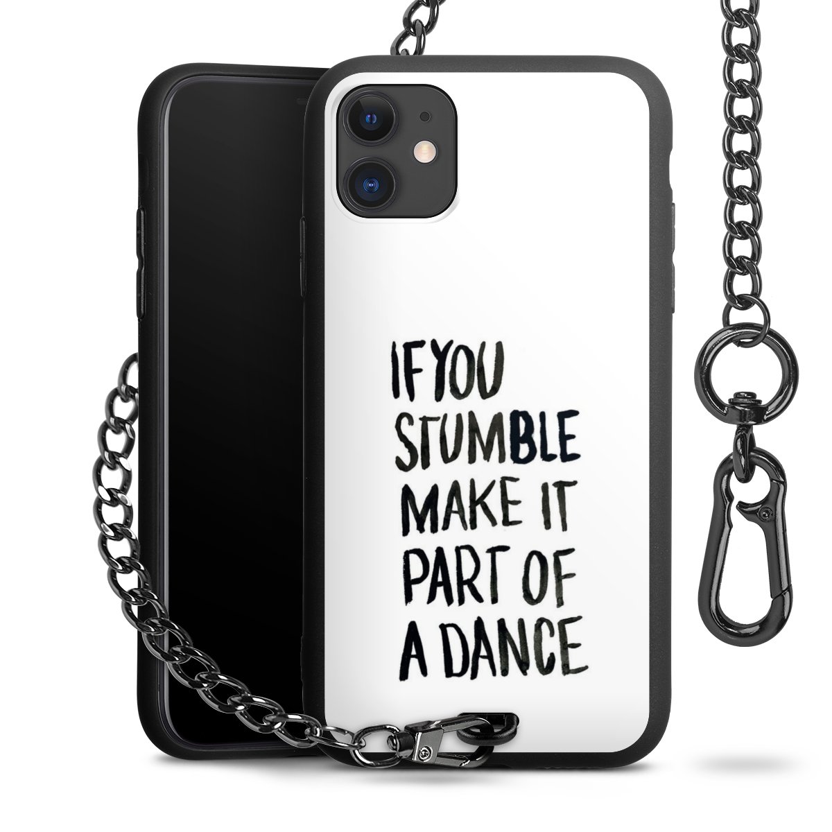 Die mattschwarze Silikon-Handyhülle besteht aus robustem TPU (thermoplastisches Polyurethan). Sie ist flexibel und schützt Dein Smartphone vor Stößen und Kratzern. Die Kette sowie der Karabinerhaken sind aus Metall in Gunmetal-Optik gefertigt. Für dieses Produkt kommen ausschließlich TÜV-geprüfte Materialien zum Einsatz.