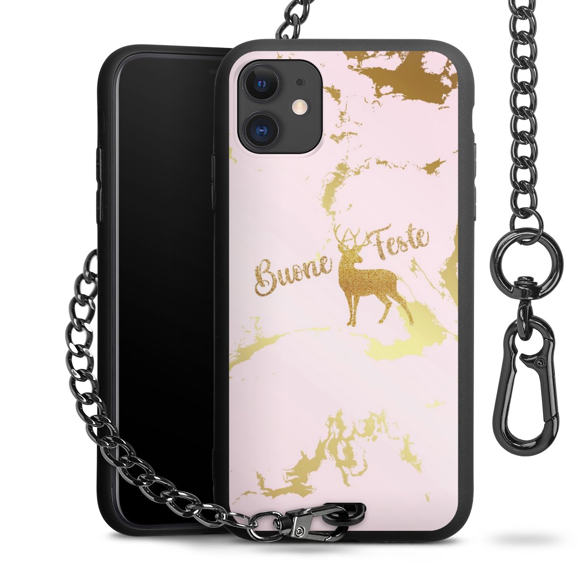 - Mattschwarze Handyhülle mit Metallkette