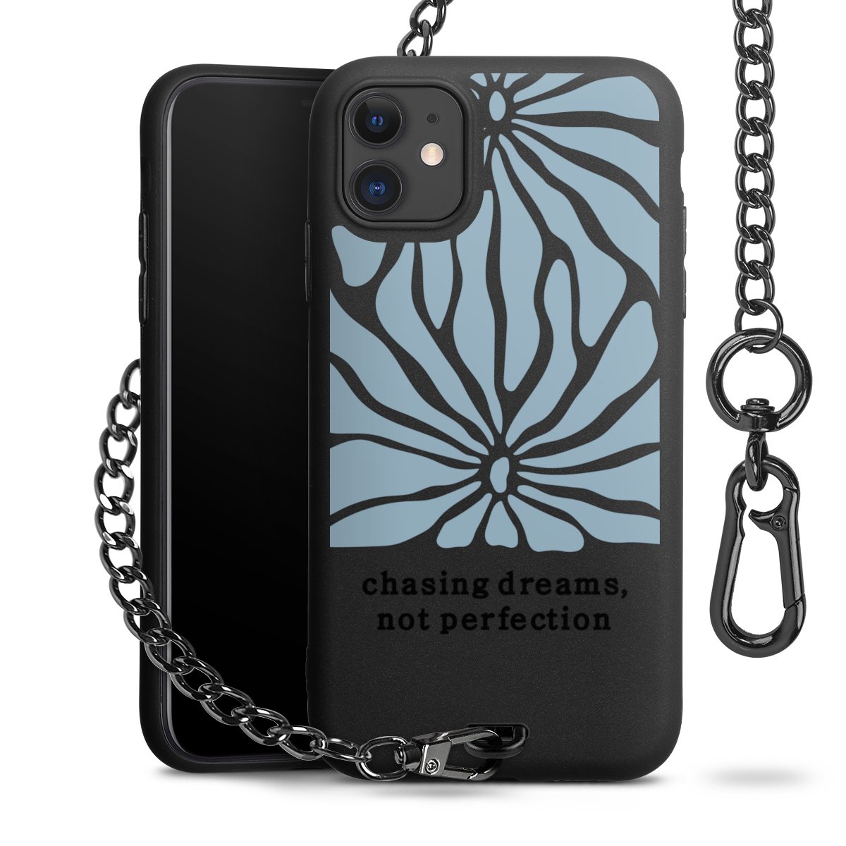 - Mattschwarze Handyhülle mit Metallkette