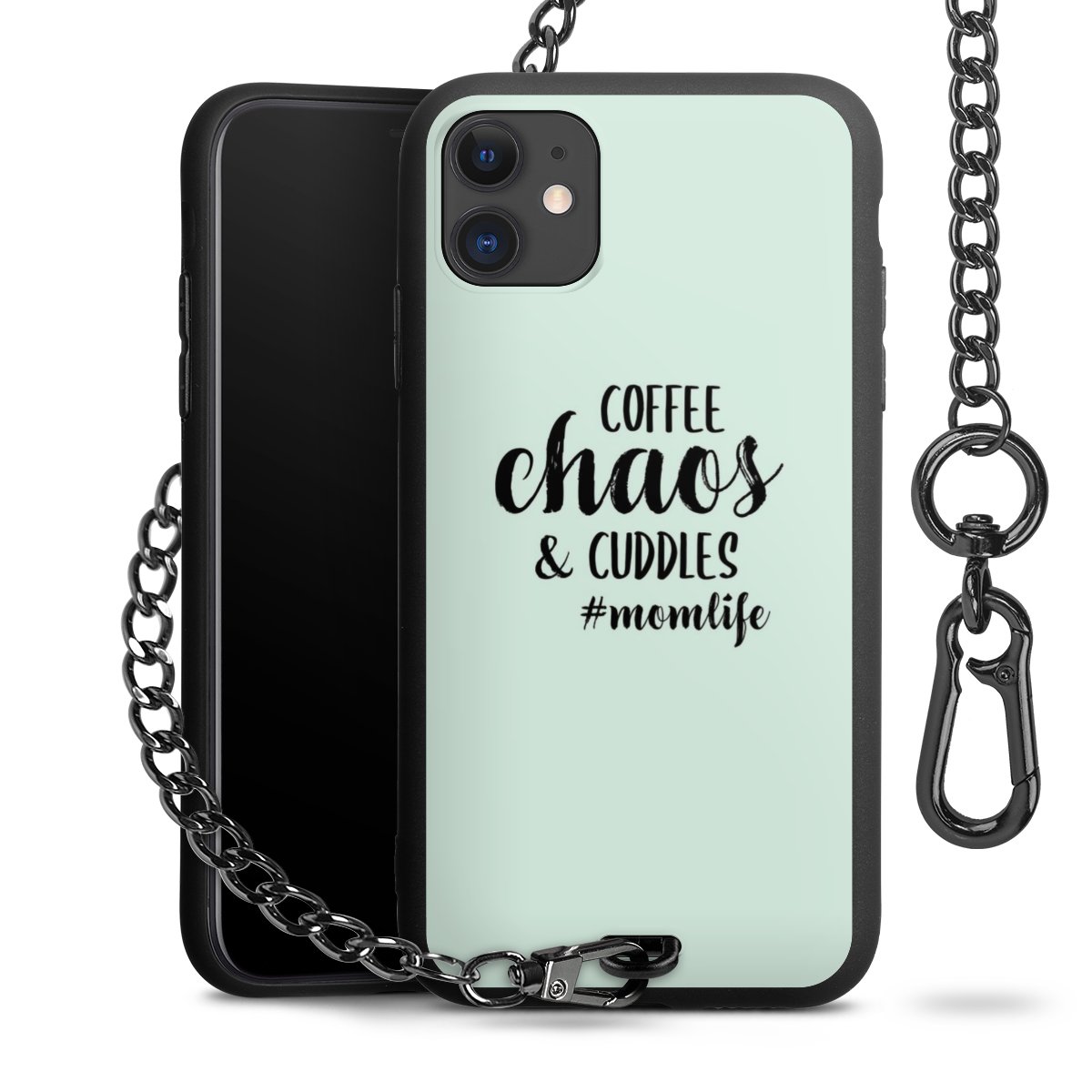 - Mattschwarze Handyhülle mit Metallkette