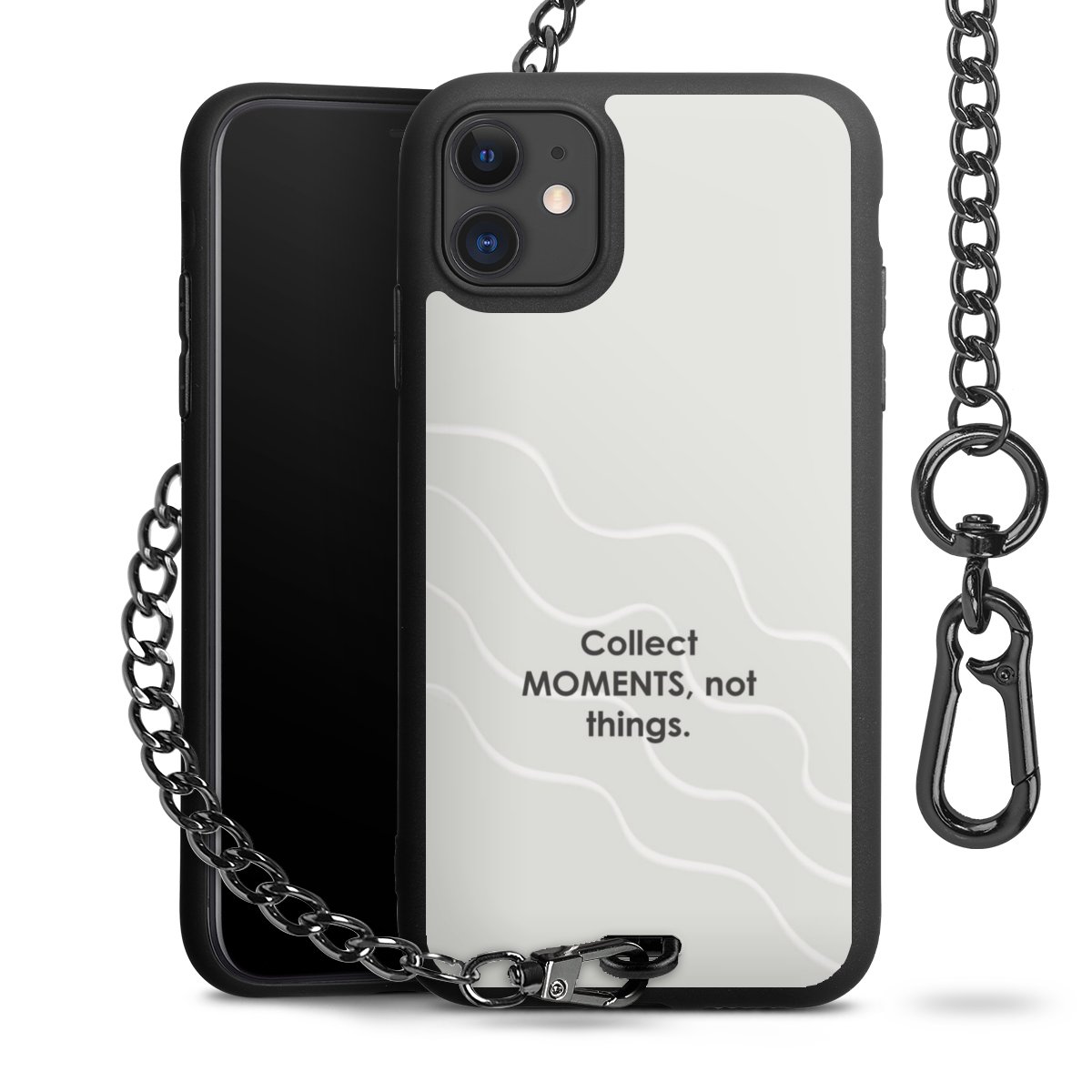- Mattschwarze Handyhülle mit Metallkette