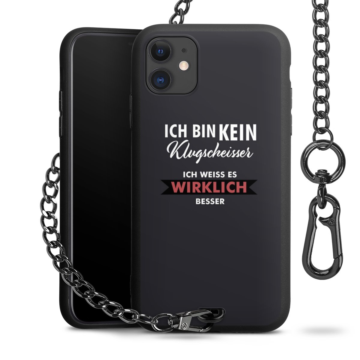 - Mattschwarze Handyhülle mit Metallkette