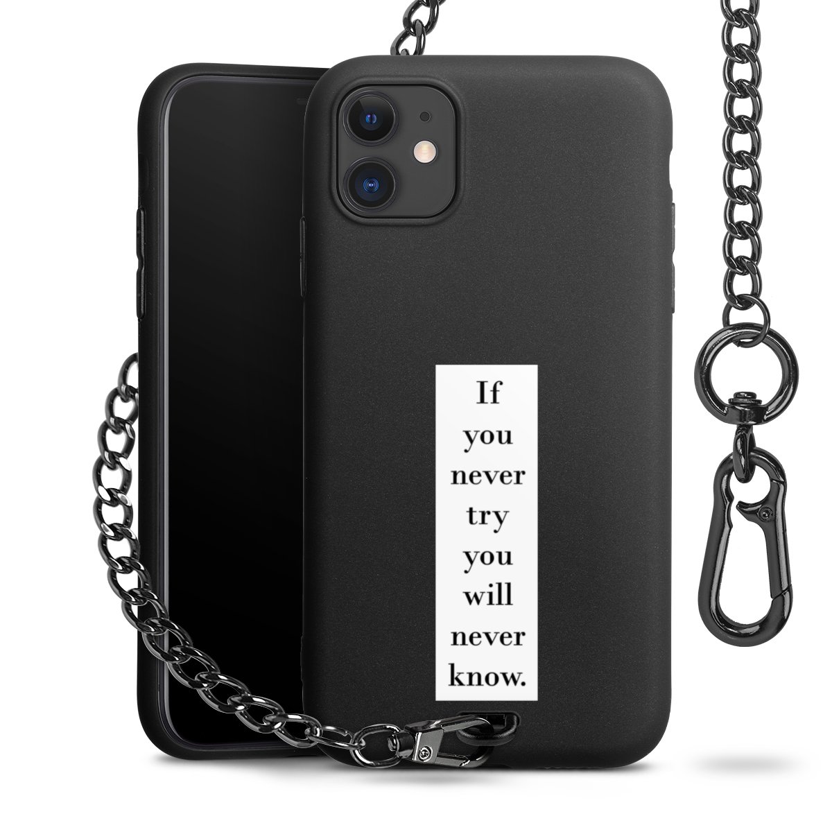 - Mattschwarze Handyhülle mit Metallkette