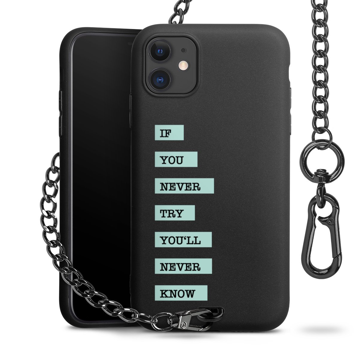 - Mattschwarze Handyhülle mit Metallkette