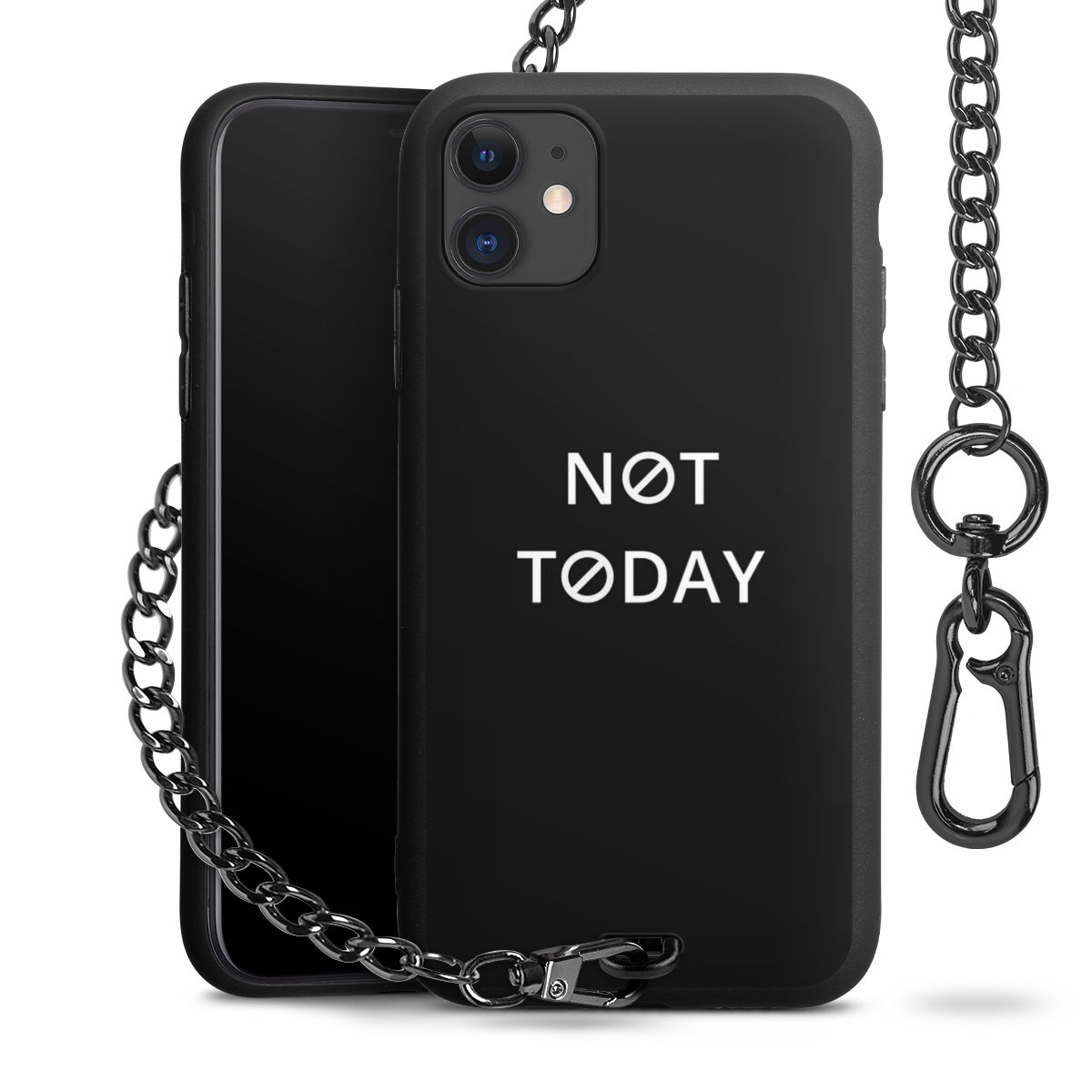 - Mattschwarze Handyhülle mit Metallkette