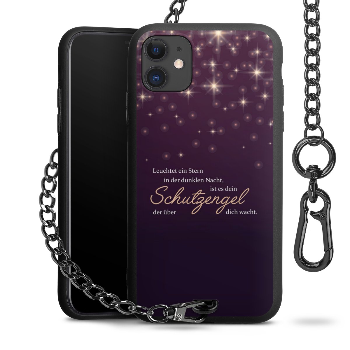 - Mattschwarze Handyhülle mit Metallkette