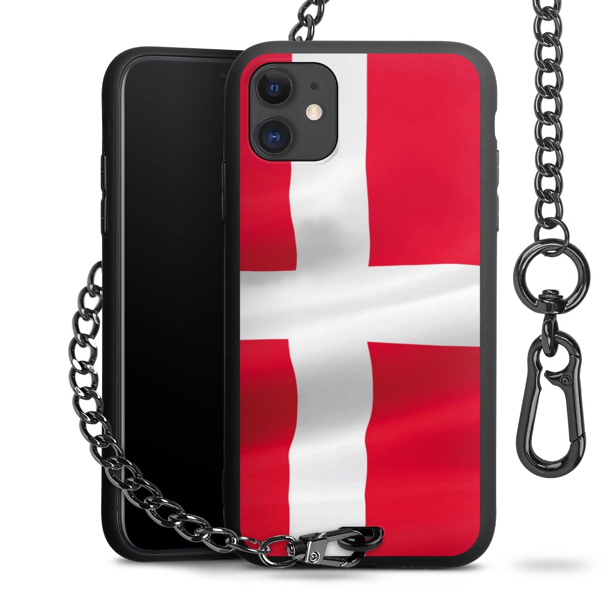 Die mattschwarze Silikon-Handyhülle besteht aus robustem TPU (thermoplastisches Polyurethan). Sie ist flexibel und schützt Dein Smartphone vor Stößen und Kratzern. Die Kette sowie der Karabinerhaken sind aus Metall in Gunmetal-Optik gefertigt. Für dieses Produkt kommen ausschließlich TÜV-geprüfte Materialien zum Einsatz.