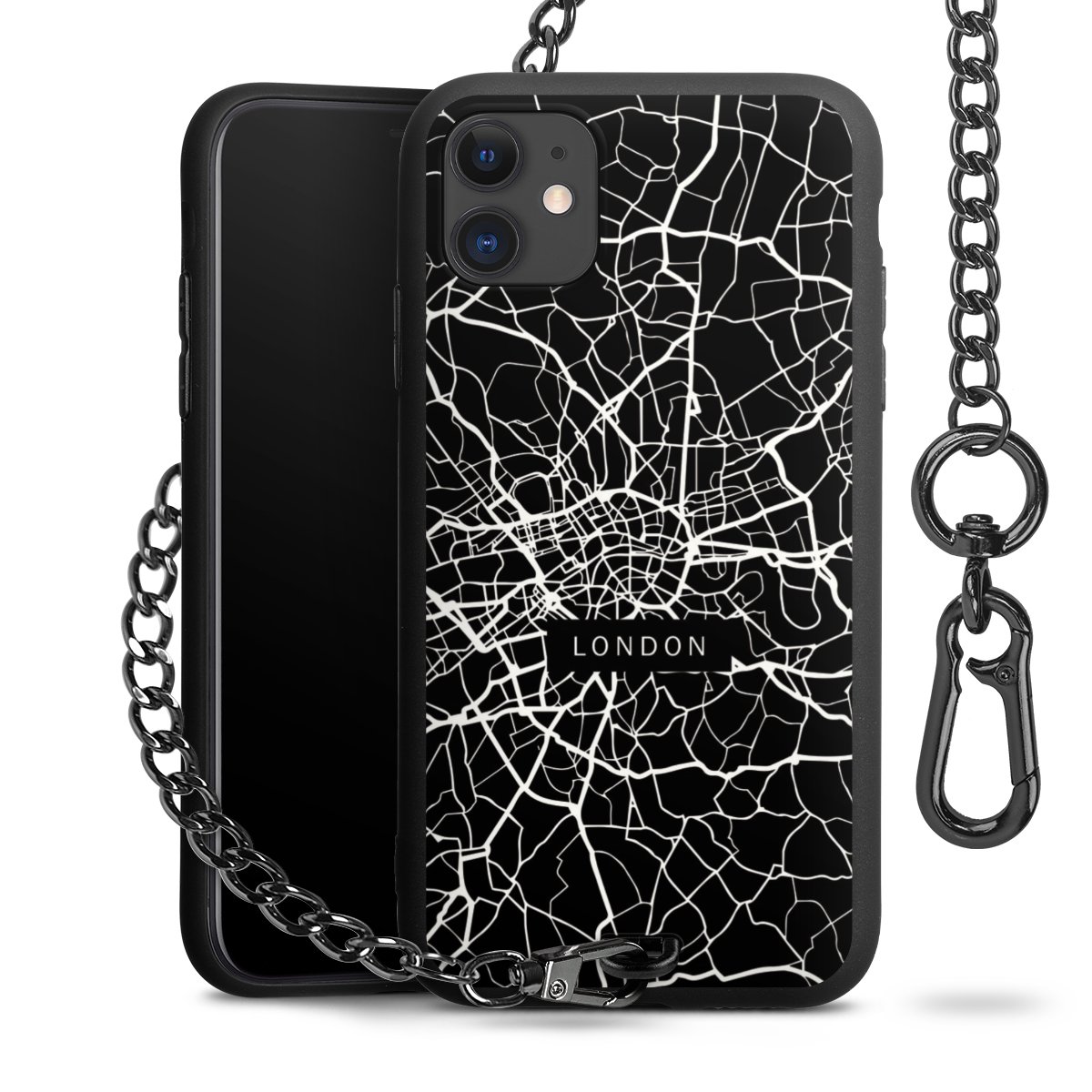 - Mattschwarze Handyhülle mit Metallkette