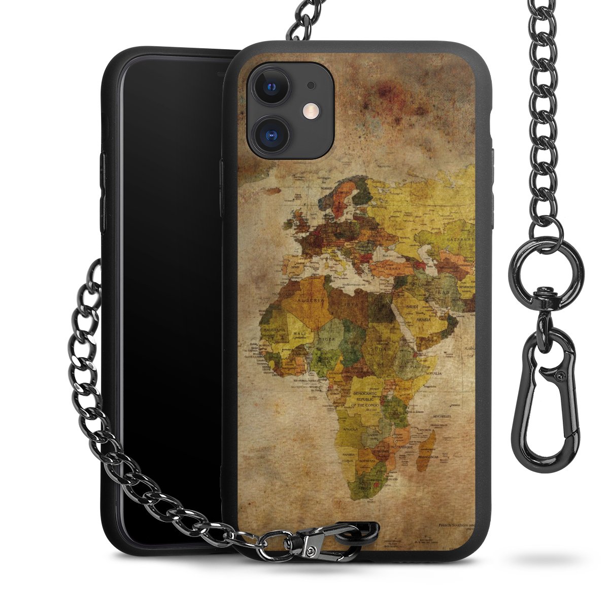 - Mattschwarze Handyhülle mit Metallkette