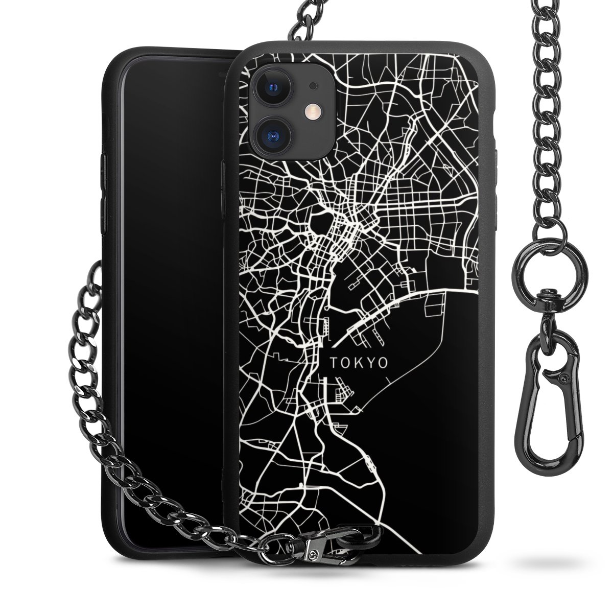 - Mattschwarze Handyhülle mit Metallkette