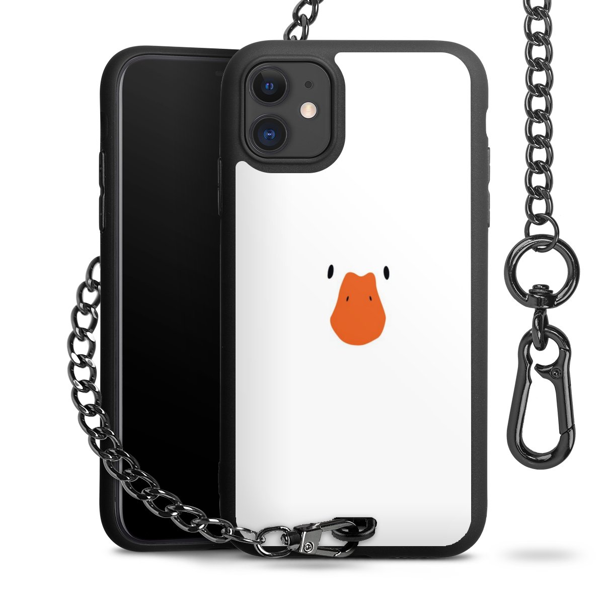 - Mattschwarze Handyhülle mit Metallkette