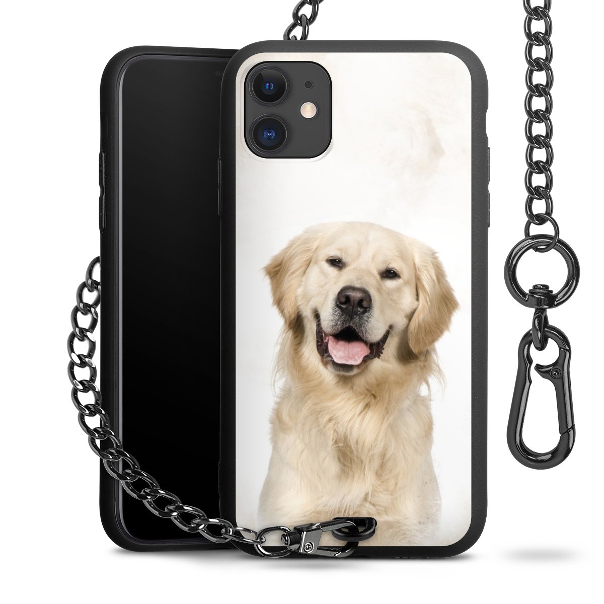 • Mattschwarze Handyhülle mit Metallkette