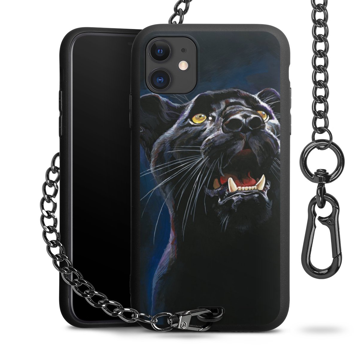 • Mattschwarze Handyhülle mit Metallkette