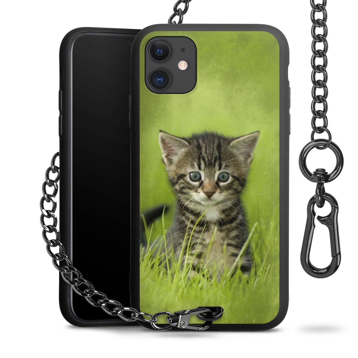 - Mattschwarze Handyhülle mit Metallkette