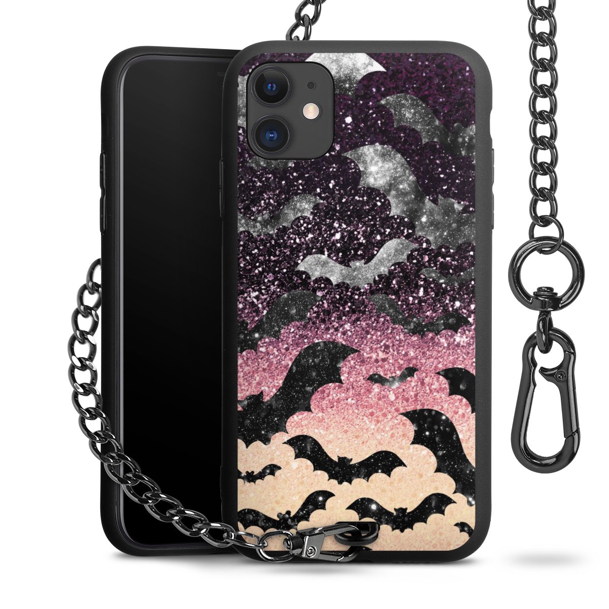 • Mattschwarze Handyhülle mit Metallkette